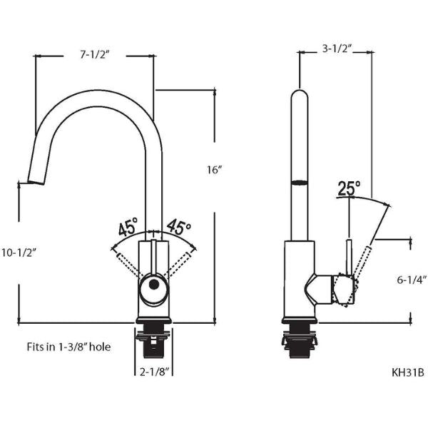 - 16-1/8" overall height with a 7-1/2" gooseneck spout projection and a 8-1/4" clearance from spout to top of sink.